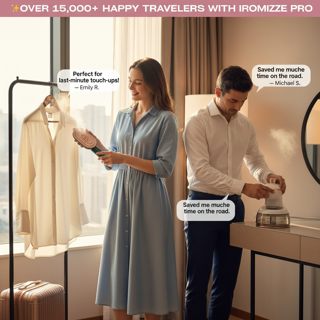 Never let wrinkles ruin your look; Ironizze Pro ensures you stay sharp on-the-go with ease and confidence.